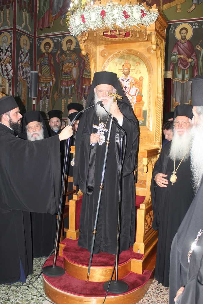 Τον Θείο Λόγο κήρυξε ο Διευθυντής του Ιδρύματος Ποιμαντικής Επιμόρφωσης της Ι.Α.Α., Αρχιμανδρίτης Θεολόγος Αλεξανδράκης, ο οποίος μίλησε για τη ζωή και το έργο του Όσίου Ιερωνύμου, ενώ αναφέρθηκε και στο πρόσωπο του Μακαριότατου και στην προσφορά του τονίζοντας: «Είστε η ανοιχτή αγκαλιά του Πατέρα, μέσα στην οποία πολλές ψυχές αναζητούν και βρίσκουν τον δρόμο της σωτήριας επιστροφής τους στους κόλπους της Εκκλησίας. Είστε ο σοφός και νουνεχής οιακοστρόφος της εκκλησιαστικής νηός, μέσα σε δύσκολες περιόδους οξύτητας και κοινωνικών προκλήσεων. Όπως ο φερώνυμος Άγιος Σας, στέκεστε με αναστάσιμη ελπίδα απέναντι σε δυσοίωνες καταστάσεις, πάντοτε με υπομονή και συγχωρητικότητα».