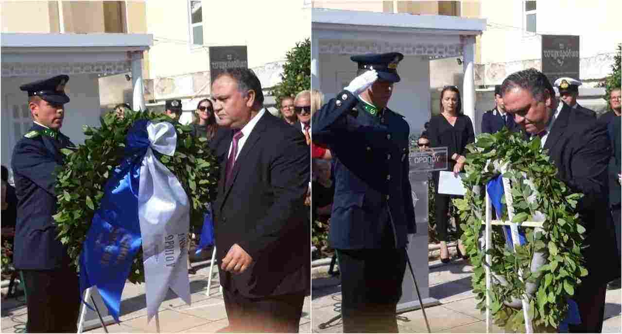 Πριν την παρέλαση, στην πλατεία Ηρώων, τελέστηκε επιμνημόσυνη δέηση από τους αιδεσιμολογιότατους π. Νικόλαο και Αντώνιο και κατατέθηκαν στεφάνια από τον Δήμαρχο Ωρωπού κ. Θωμά Ρούσση, τους εκπροσώπους των Ενόπλων Δυνάμεων και των Σωμάτων Ασφαλείας, τον εκπρόσωπο του Λιμενικού Σώματος, μαθητές των Σχολείων, τους Πολιτιστικούς Συλλόγους της περιοχής και φορείς.