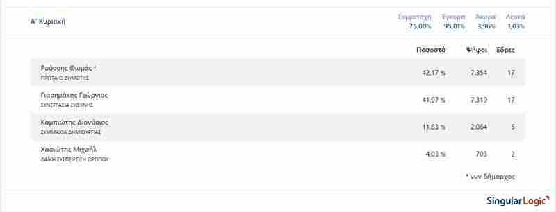 Στο νέο Δημοτικό Συμβούλιο ο κ. Γιασημάκης θα έχει 17 έδρες, όσες και ο κ. Θ. Ρούσσης.