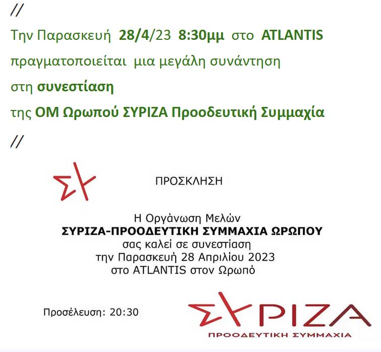 Συνεστίαση της ΟΜ Ωρωπού ΣΥΡΙΖΑ Προοδευτική Συμμαχία στον Ωρωπό