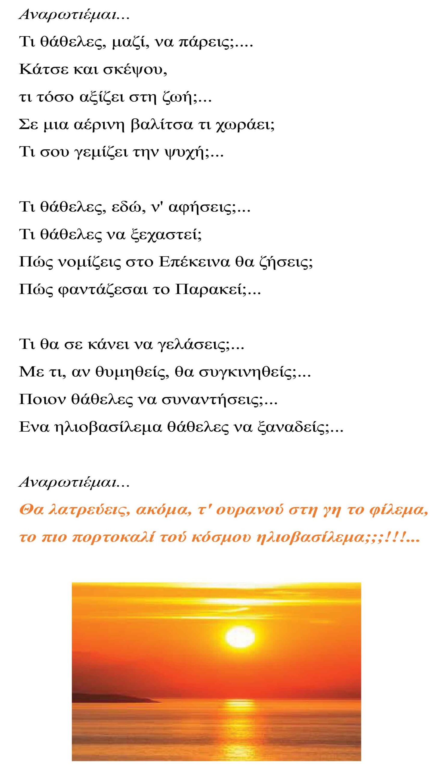 ”Τ’ ουρανού το φίλεμα” / ”Πώς φαντάζεσαι το … Παρακεί;”