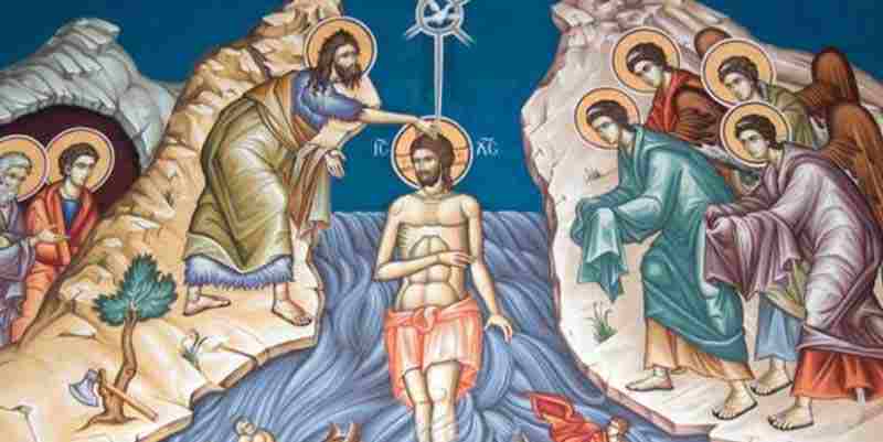 Η ιστορία της βάπτισης έχει ως εξής: Μετά από θεία εντολή ο Ιωάννης ο Πρόδρομος εγκατέλειψε την ερημική ζωή και ήλθε στον Ιορδάνη ποταμό όπου κήρυττε και βάπτιζε. Εκεί παρουσιάσθηκε κάποια ημέρα ο Ιησούς και ζήτησε να βαπτισθεί.
