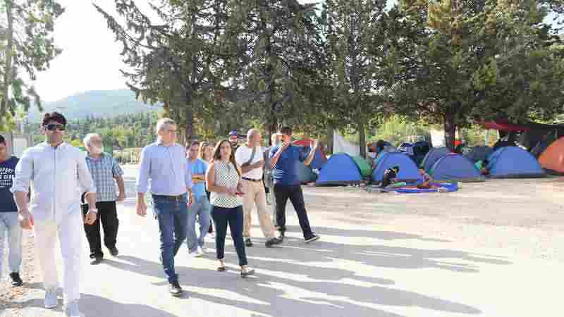 «Η κατάσταση εδώ είναι απαράδεκτη» τους ανέφερε ο Κ. Παπαδάκης. «Είμαστε εδώ για να ενισχύσουμε τον αγώνα σας και για δωρεάν μετακίνηση και για πρόσβαση στις υποδομές Υγείας, αλλά και ενόψει του χειμώνα που θα χρειάζεστε θέρμανση. Οι κυβερνήσεις, η προηγούμενη και η τωρινή, από τη μία στηρίζουν τον πόλεμο που γίνεται στη χώρα σας από την άλλη σας έχουν αφήσει να ζείτε εδώ υπό άθλιες συνθήκες. Το βασικό ζήτημα είναι να πιέσετε και εσείς, όπως θα κάνουμε και εμείς το διπλό στόχο: Αφενός καλύτερες συνθήκες, αφετέρου να πάτε στις χώρες που επιθυμείτε. Η ΕΕ, οι ΗΠΑ, οι κυβερνήσεις, σας στερούν αυτό το δικαίωμα, αλλά η οργάνωσή σας και η επιμονή όλων μας πρέπει να συνεχιστεί».