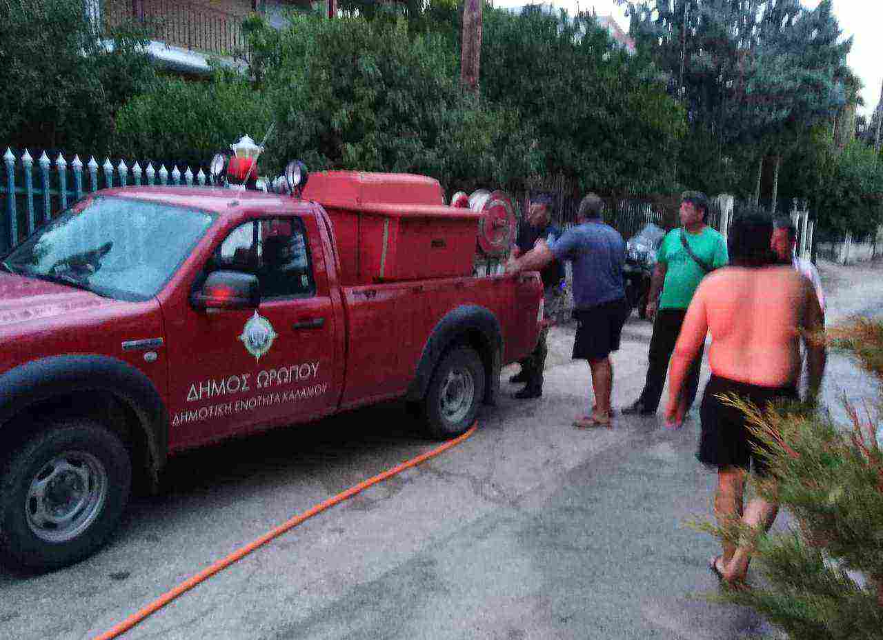 Άνδρες της Πυροσβεστικής, της Ομάδας Πολιτικής Προστασίας του Δήμου Ωρωπού, Εθελοντές αλλά και κάτοικοι με υδροφόρες ακόμα και λάστιχα, προσπαθούν να σβήσουν τις εστίες φωτιάς, που κατακαίουν την περιοχή. Αναζωπύρωση παρατηρήθηκε πίσω από το ξενοδοχείο Dolphin, η οποία άμεσα τέθηκε υπό έλεγχο, καθώς υπήρξαν ρίψεις του ελικοπτέρου.