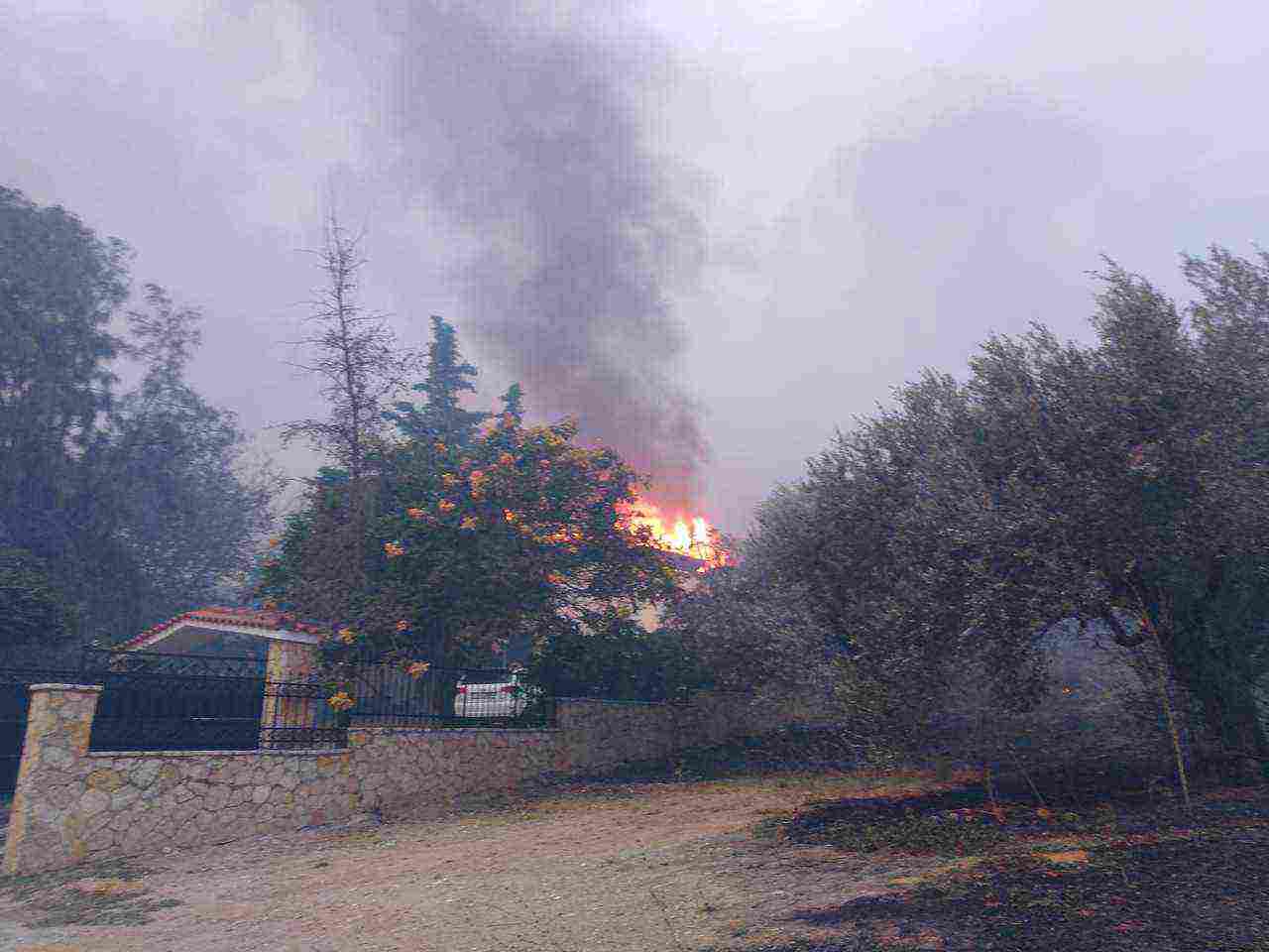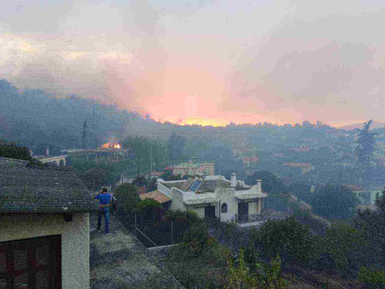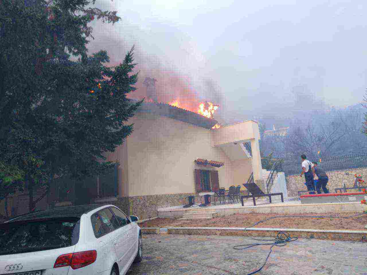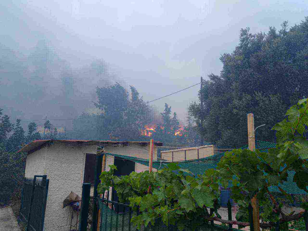 Δραματική είναι η κατάσταση στους οικισμούς Πανόραμα και Γαλήνη των Αγ. Αποστόλων Καλάμου. Η φωτιά έχει κάψει μεγάλες εκτάσεις και έχει μπει στις αυλές των σπιτιών.