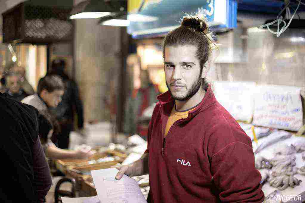 Δύσκολη δουλειά, έχει τις απαιτήσεις της. Ξυπνάω 2.00 το βράδυ, ο πατέρας μου πηγαίνει για ψώνια κι εγώ ανοίγω το μαγαζί στις 5.00. 5.30 είναι ανοικτό και στον κόσμο και κλείνουμε 18.00 το απόγευμα. Δεκαεπτά ώρες την ημέρα, έξι ημέρες την εβδομάδα. Ζυγίζεις, κουβαλάς, πουλάς.