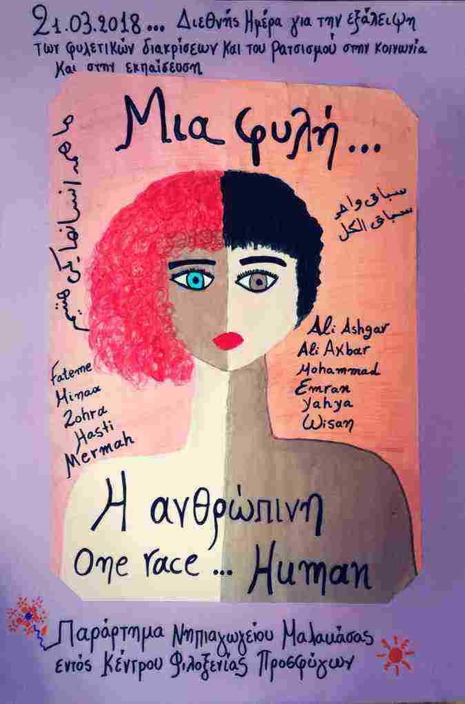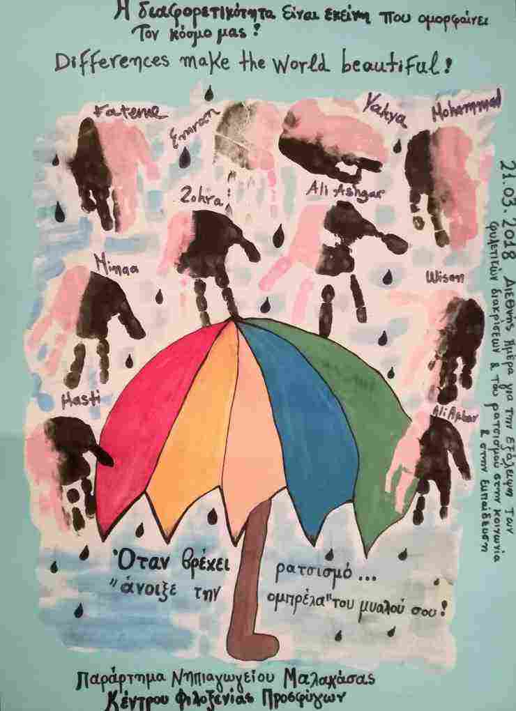 Μόνο που αυτή είναι η μία πλευρά, το κολαστήριο. Κανείς δεν μας είπε για τον παράδεισο που υπάρχει, στο κέντρο ακριβώς της πυράς. Τι γίνεται εκεί μέσα; Εκεί υπάρχουν περισσότερα από 300 παιδιά, προσφυγόπουλα, εκ των οποίων τα 60, περίπου, φοιτούν στο νηπιαγωγείο που υπάρχει μέσα στο Κέντρο Φιλοξενίας Μαλακάσας.. Κοντέινερς που οι νηπιαγωγοί τα έχουν μετατρέψει σε παραμυθούπολη. Όμορφοι χώροι γεμάτοι χρώματα, ζωγραφιές και χαμόγελα, όπου τα μικρά προσφυγόπουλα μαθαίνουν την ελληνική γλώσσα, τις συνήθειες και τον πολιτισμό.