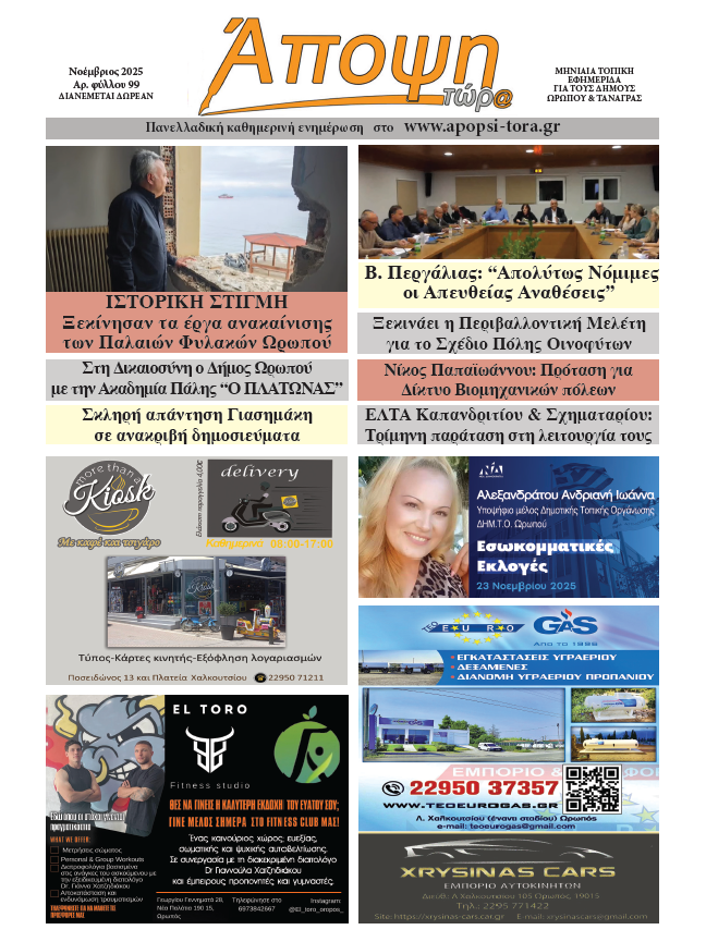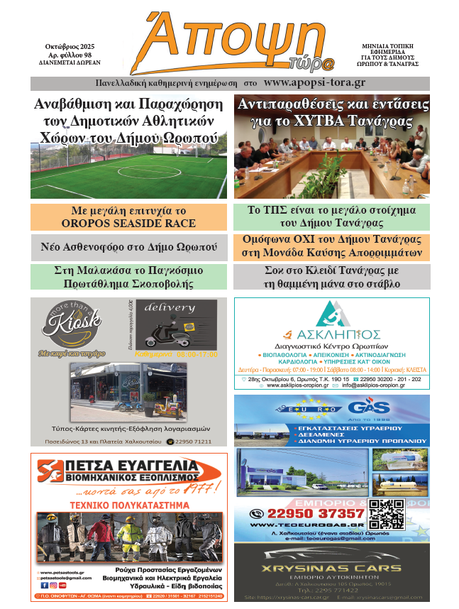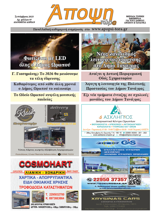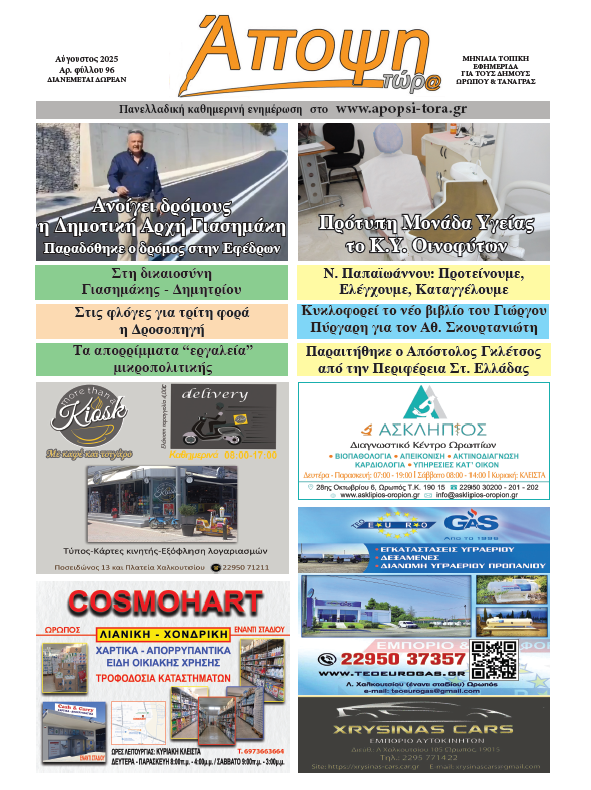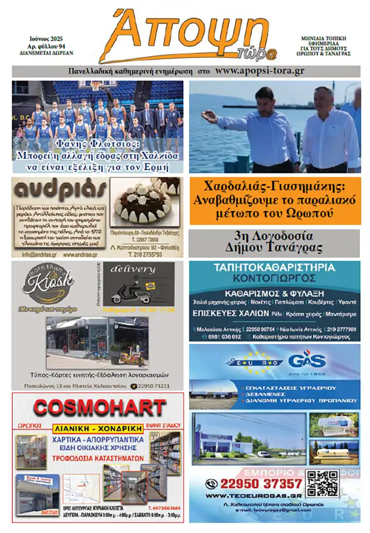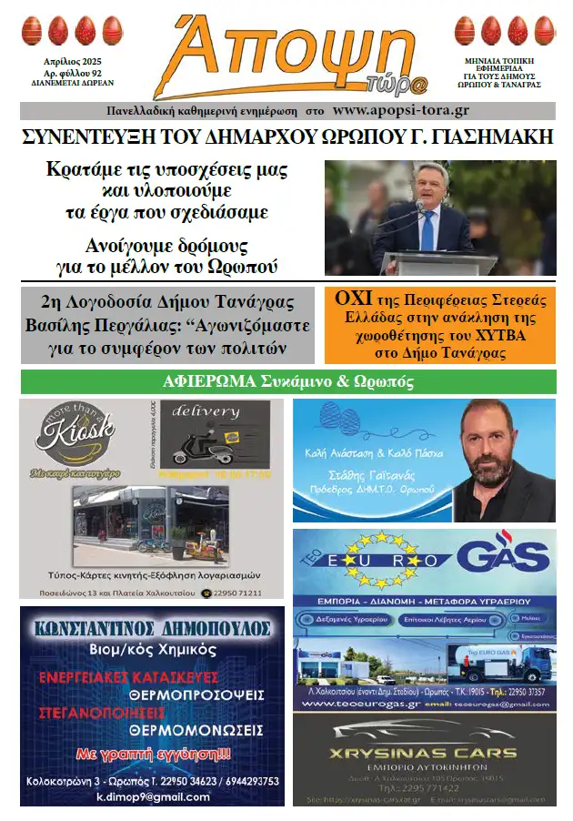 ΤΕΥΧΟΣ 86ΤΕΥΧΟΣ 85Τεύχος 84Τεύχος 83Τεύχος 82Τεύχος 81Τεύχος 80Χριστούγεννα 2023Τεύχος 79Τεύχος 78Ειδική Έκδοση Δήμος Ωρωπού Οκτώβριος 2023Ειδική Έκδοση Δήμος Τανάγρας Οκτώβριος 2023Ειδική Έκδοση Δήμος Ωρωπού Σεπτέμβριος 2023Ειδική Έκδοση Δήμος Τανάγρας Σεπτέμβριος 2023Τεύχος 77Τεύχος 76Τεύχος 75Τεύχος 74Τεύχος 73Πάσχα 2023Τεύχος 72Τεύχος 71Τεύχος 70Χριστούγεννα 2022Τεύχος 69Τεύχος 68Τεύχος 67