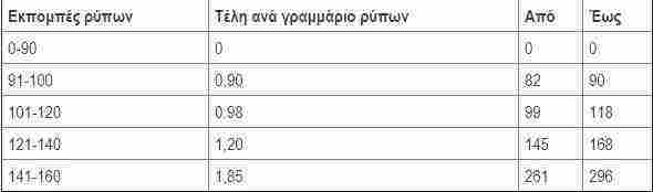 2.Τα τέλη για ΙΧ από το 2011 και μετά (βάσει ρύπων)
