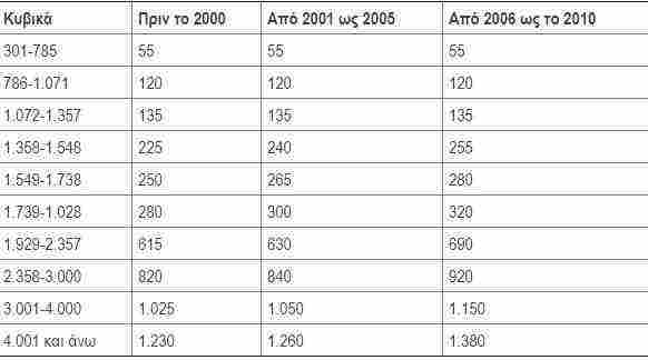 1.Τα τέλη για ΙΧ προ του 2011 (με βάση τον κυβισμό)