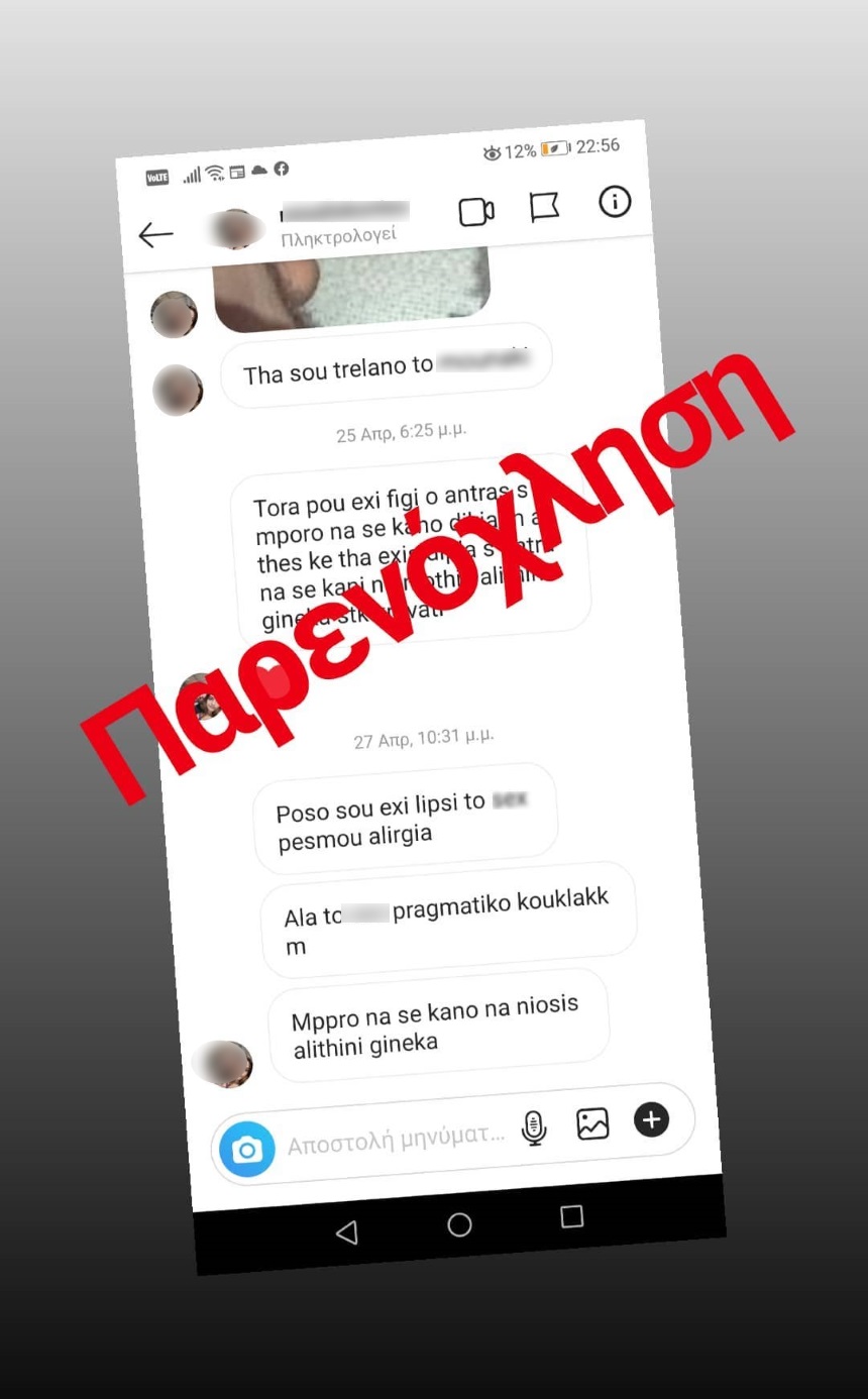 Το βράδυ της Δευτέρας, η Αλίκη Κατσαβού αποκάλυψε στους διαδικτυακούς φίλους της στο Instagram την σεξουαλική παρενόχληση που δέχτηκε από κάποιον follower δημοσιεύοντας τα ακατάλληλα μηνύματα που δέχτηκε. Η ταλαντούχα ηθοποιός, μάλιστα, δεν δίστασε να βγάλει στη δημοσιότητα του όνομα και το προφίλ του αγνώστου στο Instagram ενώ στη φωτογραφία που ανέβασε στον προσωπικό της λογαριασμό σημείωσε: «Παρενόχληση».