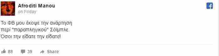 Μετά την αφαίρεση της ανάρτησης η Αφροδίτη Μάνου έγραψε: