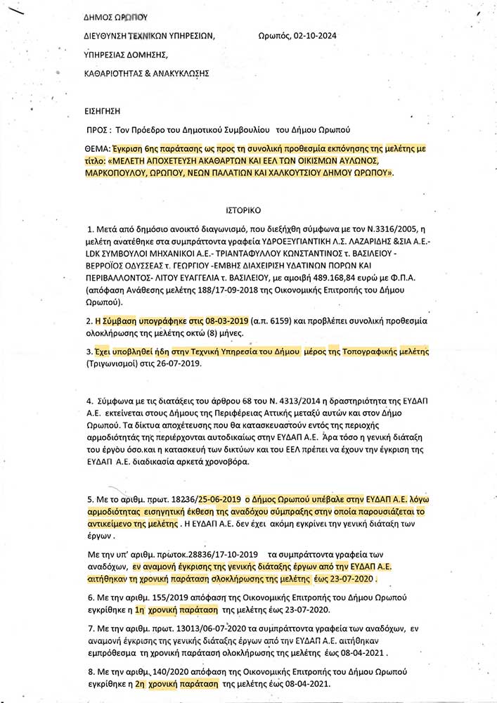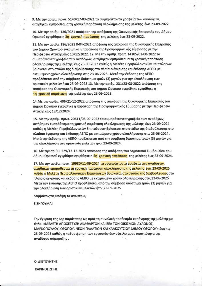 Σύσσωμη, λοιπόν, η αντιπολίτευση συμπεριλαμβανομένου του κ.Κοντζιά, στις 10/10/2024, καταψηφίσαμε την 6η παράταση του βιολογικού καθαρισμού και όχι το έργο που κάποιοι τέρπουν να φωνάζουν. Σας προκαλούμε, καλέστε τώρα τα κανάλια και εξηγήστε γιατί για ένα έργο ανάπτυξης του τόπου, που έχει μπει σε αναμονή 5.5 χρόνια, ζητήσατε την ψήφιση και άλλης παράτασης, ήτοι 6.5 χρόνια (8/3/2019 – 23/9/2025), ενώ η σύμβαση προβλέπει για τη συγκεκριμένη μελέτη ολοκλήρωσή της σε 8 μήνες. Διακινδυνεύοντας να χαρακτηριστούμε για άλλη μια φορά ως οι πιο «κακοί άνθρωποι» θέτουμε προς προβληματισμό των πολιτών τα παρακάτω ερωτήματα: