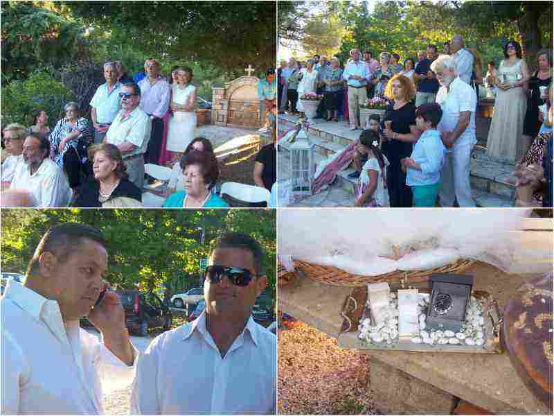 Οι νεόνυμφοι έφτασαν στο εκκλησάκι μαζί,  σπάζοντας την παράδοση, οπότε ο γαμπρός γλίτωσε το στήσιμο της νύφης, η οποία απαστράπτουσα ζούσε τη μοναδικότητα της στιγμής.