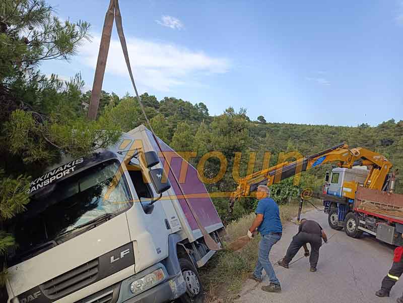 Ανετράπη νταλίκα duff το απόγευμα της Δευτέρας 26 Ιουνίου, στην Περιφερειακή Οδό Οινόης – Μαγούλας χωρίς ευτυχώς τραυματισμό του οδηγού.