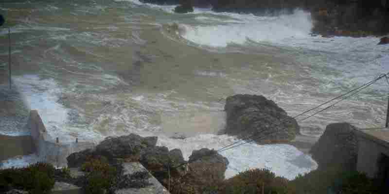 Ανεμοι της τάξεως των εννέα μποφόρ έπνεαν λόγω της κακοκαιρίας στα Αντικύθηρα, δημιουργώντας τεράστια κύματα στο μικρό λιμάνι του νησιού του Αιγαίου.