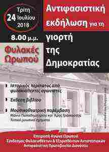 Αντιφασιστική Εκδήλωση, Τρίτη 24 Ιούλη 2018, στις Παλιές Φυλακές Ωρωπού