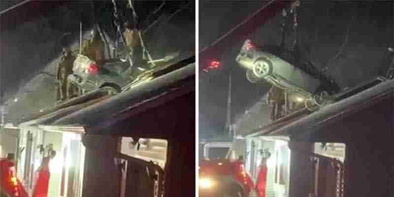Πώς έφτασε να καρφωθεί το όχημα στη σκεπή – Τρελές εικόνες