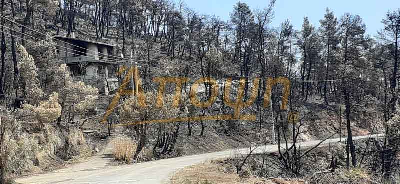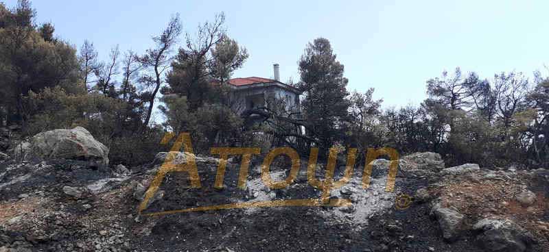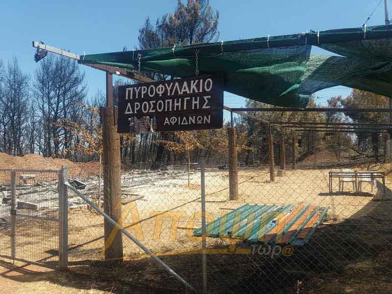 Καμένα σπίτια, καταστραμμένες επιχειρήσεις, στάχτη και αποκαΐδια συναντήσαμε σε ένα οδοιπορικό φρίκης και απογοήτευσης που έκανε η εφημερίδα «ΑΠΟΨΗ ΤΩΡΑ» στις καμένες περιοχές, ξεκινώντας από τις Αφιδνες φτάσαμε στο φυλάκιο της Μ.Α.Κ.Ι.Π., συνεχίσαμε προς το αντλιοστάσιο στο Κατσιμίδι, καθώς και τις δεξαμενές Β2 και Β3, για να φτάσουμε μέχρι τη Δροσοπηγή, ενώ οι καπνοί ακόμα έβγαιναν από τους κορμούς των δέντρων που δεν γλίτωσαν την μανία της φωτιάς.
