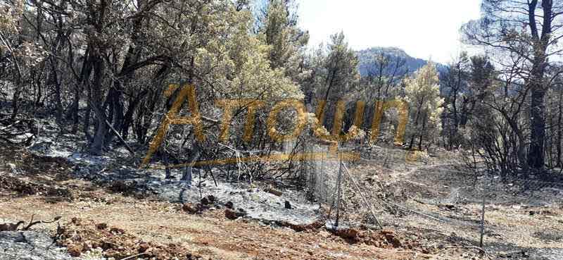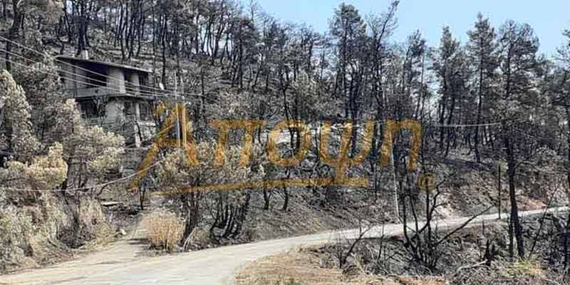 Κρανίου τόπο άφησε πίσω της η πύρινη λαίλαπα που κατέκαψε τις άλλοτε καταπράσινες περιοχές της Δροσοπηγής, των Αφιδνών και της Ιπποκράτειου Πολιτείας.
