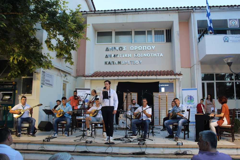Ολοκληρώθηκαν, με απόλυτη επιτυχία, την Τετάρτη 5 Ιουλίου, στην πλατεία Καπανδριτίου, οι συναυλίες του Δημοτικού Ωδείου Ωρωπού, με την ευκαιρία της λήξης του φετινού κύκλου μαθημάτων.