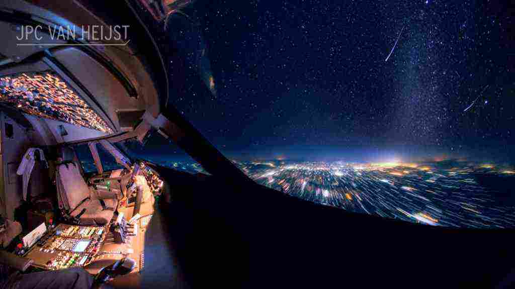 Εκθέτει τη μοναδική θέα που βλέπει από το πιλοτήριο του, όπως για παράδειγμα τους μετεωρίτες που πέφτουν.