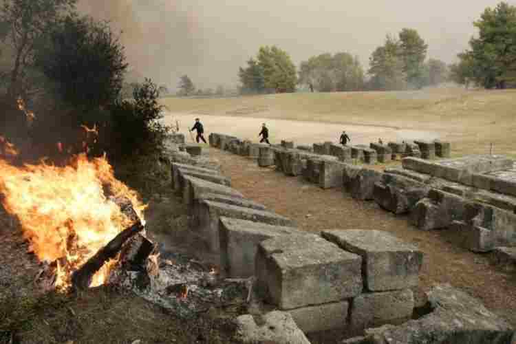 Στις 26 Αυγούστου 2007, οι φωτιές που κατέκαιγαν την Ηλεία, έφτασαν μέχρι τον Αρχαιολογικό Χώρο της Αρχαίας Ολυμπίας και τον περικύκλωσαν. Μια αναδρομή στα βίντεο των τηλεοπτικών ανταποκρίσεων της εποχής, θα δείξει τις αγωνιώδεις εκκλήσεις των πυροσβεστών προς το συντονιστικό κέντρο να σταλούν ενισχύσεις, ώστε η φωτιά να μη μπει μέσα στην Αρχαία Ολυμπία.