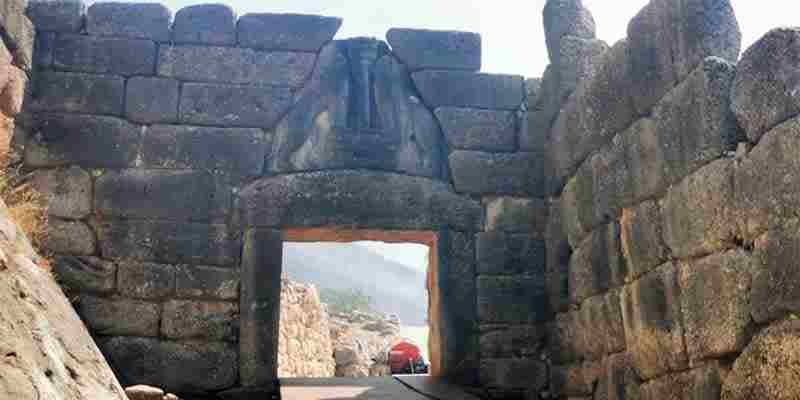 Η Πύλη των Λεόντων, η κύρια είσοδος της ακρόπολης των Μυκηνών, του κύριου κέντρου του Μυκηναϊκού Πολιτισμού, γλίτωσε από τη φωτιά. Το μεγαλιθικό επιβλητικό μνημείο, ήταν το έμβλημα των μυκηναίων ηγεμόνων και το σύμβολο της ισχύος τους. Τα δύο ανάγλυφα αντιμέτωπα λιοντάρια, παραμένουν εκεί να θωρούν αγέροχα τον χώρο και να αντανακλούν τη δύναμη των Μυκηνών, που θα ξανά γεννηθούν μέσα από τις στάχτες τους.