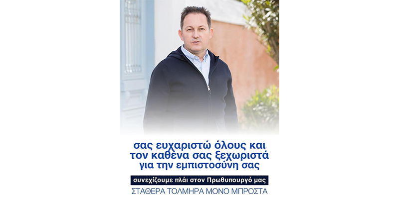 Σας ευχαριστώ από καρδιάς που με τιμήσατε με την ψήφο σας και μου δώσατε την δυνατότητα να σας εκπροσωπήσω στο Ελληνικό Κοινοβούλιο. Χιλιάδες ευχαριστώ σε όλες και όλους που χάρισαν στη Νέα Δημοκρατία μια ιστορική και μεγαλειώδη νίκη. Δώσαμε ένα πολύ δύσκολο και σημαντικό αγώνα. Με ήθος, αρχές και αξίες. Με ξεκάθαρες απόψεις μιλήσαμε τολμηρά στον ελληνικό λαό για μια σταθερή πορεία που θα οδηγήσει την κοινωνία μπροστά.