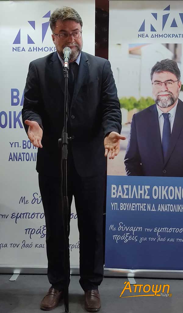 Τεράστια επιτυχία γνώρισε η προεκλογική συγκέντρωση την οποία πραγματοποίησε, την Κυριακή 14 Μαΐου, ο υποψήφιος Βουλευτής της Νέας Δημοκρατίας, στην Αν. Ατική, Βασίλης Οικονόμου, στην καφετέρια Oscar, στη Σκάλα Ωρωπού.