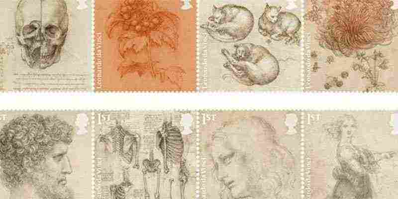 Κάθε σχέδιο στη σειρά γραμματοσήμων των Βρετανικών Ταχυδρομείων αντιστοιχεί σε έργο του Ντα Βίντσι