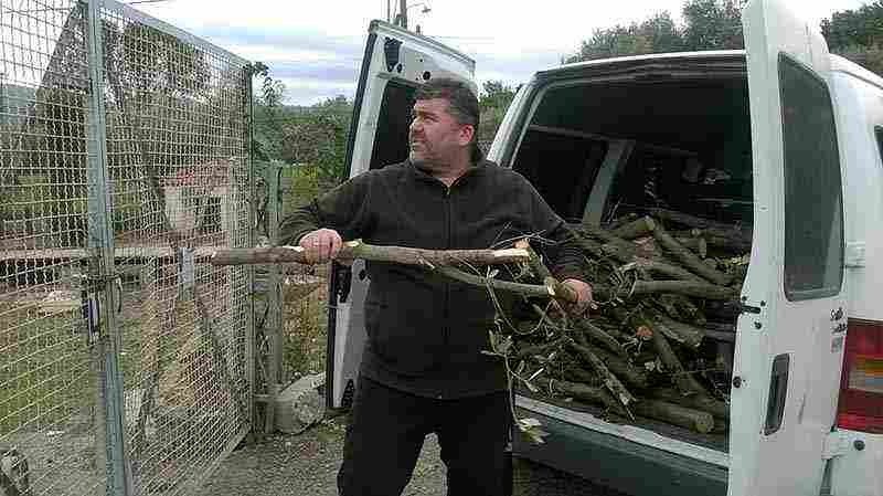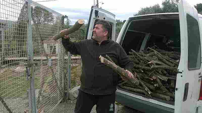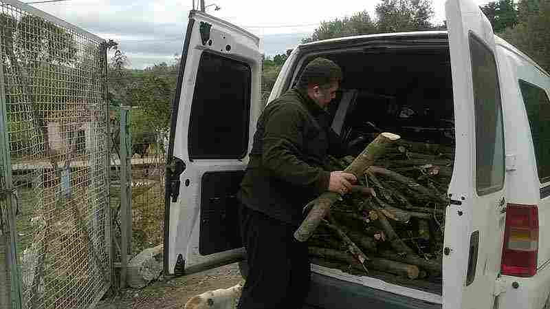 Τον αποχαιρετίσαμε για να τον αφήσουμε να τελειώσει με το ξεφόρτωμα των ξύλων, γιατί, όπως μας είπε, μετά από εκεί τον περιμέναν και οι τετράποδοι φίλοι του, τα αδεσποτάκια που πηγαίνει καθημερινά να ταΐσει.