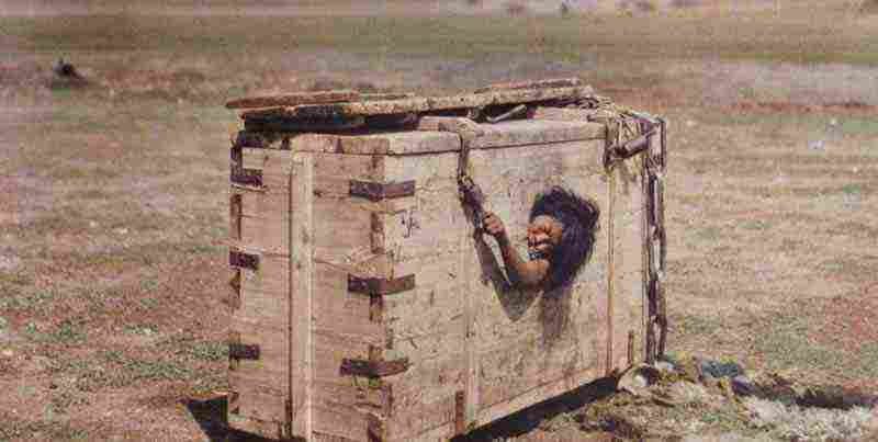 Όπως διακρίνεται στην φωτογραφία, ο φυλακισμένος τοποθετείτο αλυσοδεμένος μέσα σε ξύλινο παραλληλόγραμο κουτί διαστάσεων με επιφάνεια ίση με τραπεζάκι κουζίνας.
