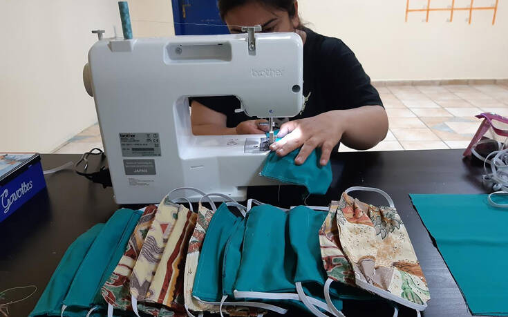 Στη δομή της Ανδραβίδας υπάρχουν πέντε ραπτομηχανές, ωστόσο για την κατασκευή των προστατευτικών μασκών χρησιμοποιούνται μόνο οι δύο, προκειμένου να τηρούνται οι απαραίτητες αποστάσεις ασφαλείας.