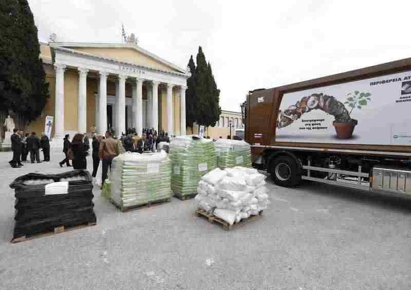 Στο πλαίσιο της εκδήλωσης στον προαύλιο χώρο του Ζαππείου παρουσιάστηκε μηχανολογικός εξοπλισμός της Περιφέρειας και του ΕΔΣΝΑ ο οποίος θα αξιοποιηθεί για την εφαρμογή του προγράμματος Ανακύκλωσης της Περιφέρειας Αττικής.