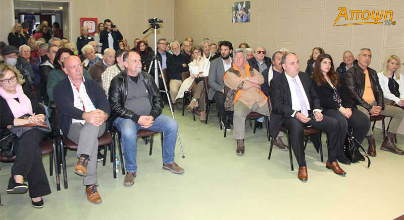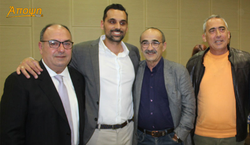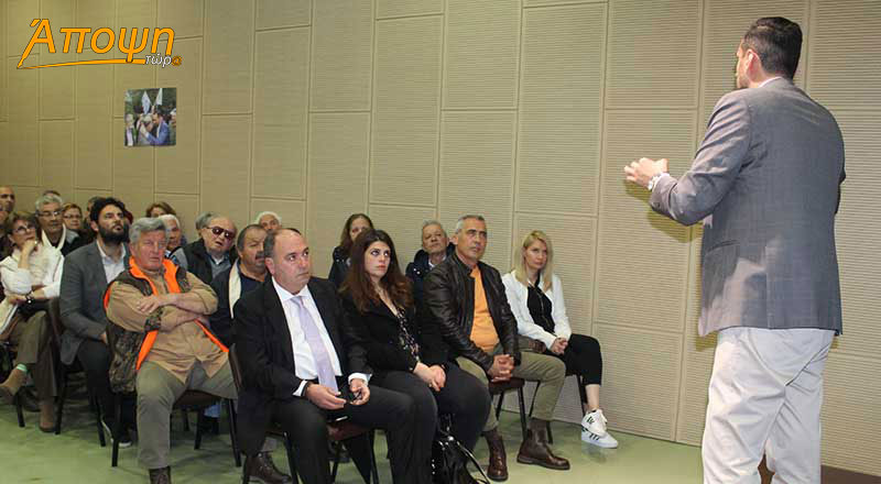 Μετά την ομιλία του ο φίλος και συναγωνιστής του Μιχάλης Καλογιαννάκης, Πρόεδρος των Ελλήνων Τοπογράφων, απάντησε σε ερωτήσεις πολιτών για την κατάργηση δόμησης σε οικόπεδα εκτός σχεδίου και για τα δασικά.