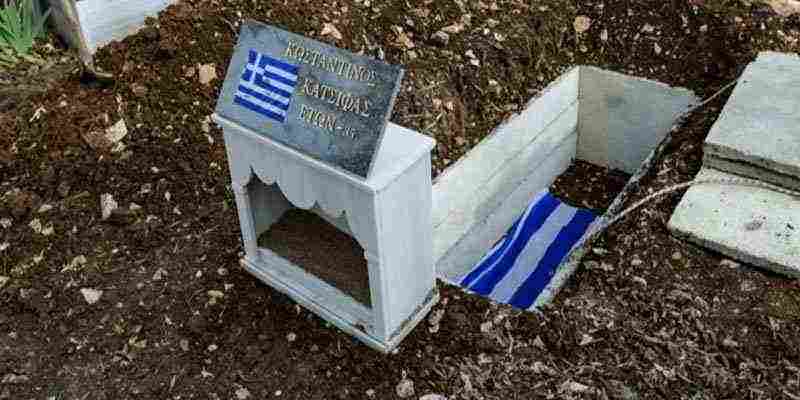 Σκεπασμένος με την ελληνική σημαία είναι ο τάφος του Κωνσταντίνου Κατσίφα. Ο 35χρονος ομογενής ο οποίος έπεσε νεκρός στις 28 Οκτωβρίου στους Βουλιαράτες από πυρά Αλβανών αστυνομικών.