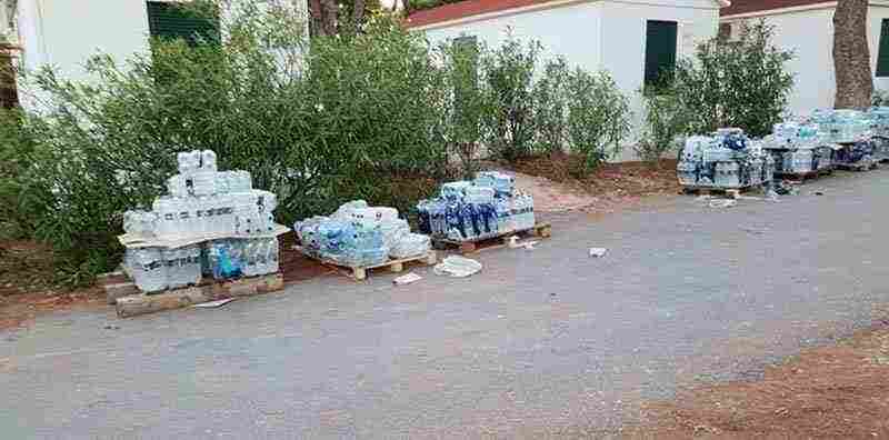 Οι υψηλές θερμοκρασίες μπορούν να αλλοιώσουν την πλαστική συσκευασία και φυσικά να καταστήσουν τα νερά ακατάλληλα για κατανάλωση. Ενώ, καθώς το κέντρο δεν φαίνεται να φυλάσσεται, καθένας μπορεί να πλησιάσει και να πάρει ότι θέλει από τις προμήθειες που προορίζονταν για τους πυρόπληκτους από τη φονική φωτιά της 23ης Ιουλίου