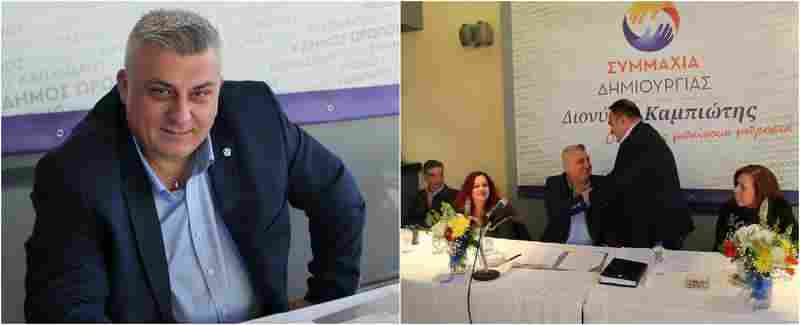 Ακολούθως το λόγο πήρε ο υποψήφιος Δήμαρχος Ωρωπού κ. Διονύσης Καμπιώτης, ο οποίος έδωσε το στίγμα του συνδυασμού λέγοντας ότι «Εμείς κάνουμε πράξη το σύνθημα οι πολίτες μπαίνουν μπροστά». Και πρόσθεσε ότι « Ήρθαμε σήμερα εδώ για να γνωριστούμε αλλά κυρίως για να σας ακούσουμε. Να ακούσουμε τις απόψεις και τις προτάσεις σας».