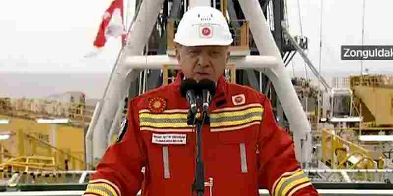 «Υπάρχουν 85 δισεκατομμύρια κυβικά μέτρα επιπλέον (…) Επομένως το κοίτασμα φτάνει τα 405 δισεκ. κυβικά μέτρα», είπε ο Ερντογάν, εν πλω στο πλοίο-γεωτρύπανο «Φατίχ», στη Μαύρη Θάλασσα.