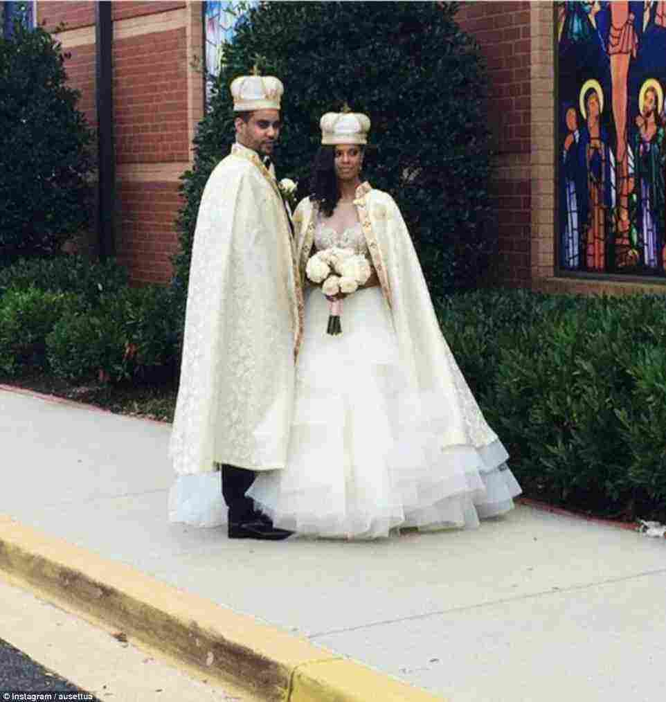 Στην τελετή, η νύφη και ο γαμπρός φορούσαν από μία τεράστια κορόνα που τους έκανε να μοιάζουν σαν αυτούς τους βασιλιάδες που βλέπουμε στις ταινίες, ενώ η νύφη επέλεξε ένα νυφικό με swarovksi, πολύτιμους λίθους και τούλι.