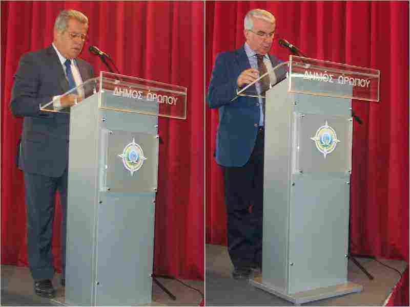 Στην Ημερίδα μίλησαν οι Βουλευτές της Περιφέρειας Αττικής κ.κ. Γιώργος Βλάχος και Αθανάσιος Μπούρας, ο Αντιδήμαρχος Τεχνικών Υπηρεσιών Ωρωπού κ. Κώστας Δέδες, ο Αναπληρωτής Γραμματέας Ανάπτυξης και Αναπληρωτής Γραμματέας Επιστημονικών φορέων Ν.Δ. κ. Γιώργος Κώτσηρας και ο Γεωλόγος κ. Ανδρέας Τσώκος.