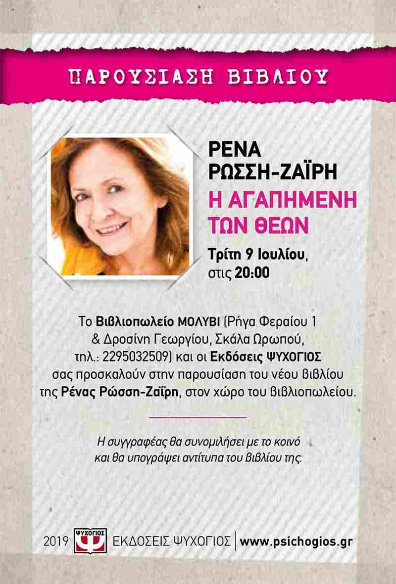 Πριν από την παρουσίαση του βιβλίου η “Άποψη τώρα” θα κληρώσει σε δύο τυχερούς το βιβλίο της κας Ρένας Ρώσση-Ζαϊρη “Η αγαπημένη των Θεών” προσφορά των εκδόσεων Ψυχογιός.