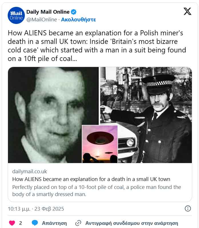 Η απόλυτη υπόθεση μυστηρίου: Ο νεκρός ανθρακωρύχος, ο αστυνόμος που τον ανακάλυψε και οι… εξωγήινοι