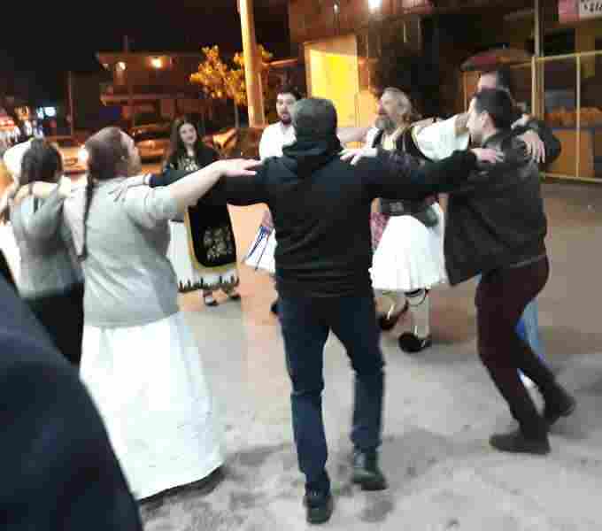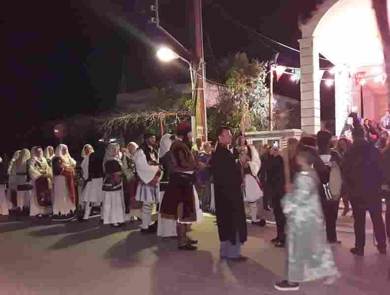 Οι γυναίκες, με τις παραδοσιακές τους φορεσιές και οι τσολιάδες, ξεχύθηκαν στο δρόμο του χωριού χορεύοντας παραδοσιακούς χορούς, προσελκύοντας ευχάριστα όλα τα βλέμματα των περαστικών και δίνοντας μια ξεχωριστή νότα στο χωριό που είχε βάλει τα γιορτινά του.