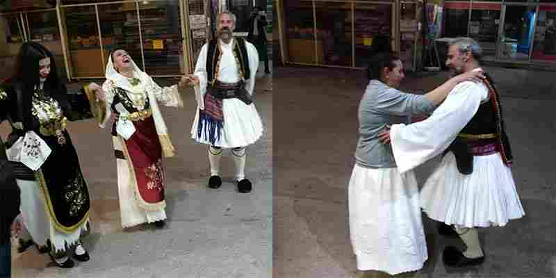Οι γυναίκες, με τις παραδοσιακές τους φορεσιές και οι τσολιάδες, ξεχύθηκαν στο δρόμο του χωριού χορεύοντας παραδοσιακούς χορούς, προσελκύοντας ευχάριστα όλα τα βλέμματα των περαστικών και δίνοντας μια ξεχωριστή νότα στο χωριό που είχε βάλει τα γιορτινά του.