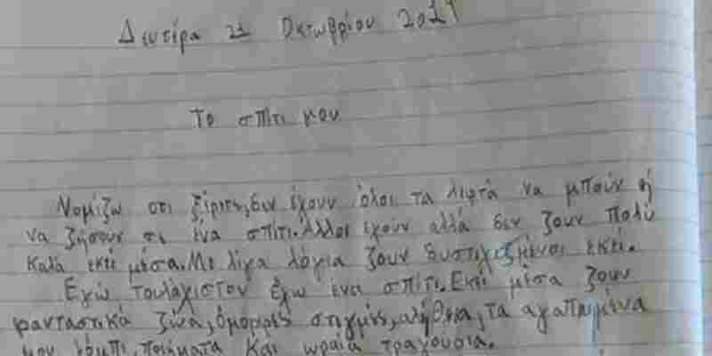 Η έκθεση ενός μικρού μαθητή με θέμα «το σπίτι μου» κάνει το γύρο του διαδικτύου και έχει γίνει viral. Δεν είναι μόνο ο εκπληκτικός τρόπος που περιγράφει το σπίτι του, αλλά και η ρηχή απάντηση του δασκάλου που προσγειώνει ανώμαλα το παιδάκι στη μίζερη πραγματικότητα του ελληνικού εκπαιδευτικού συστήματος.