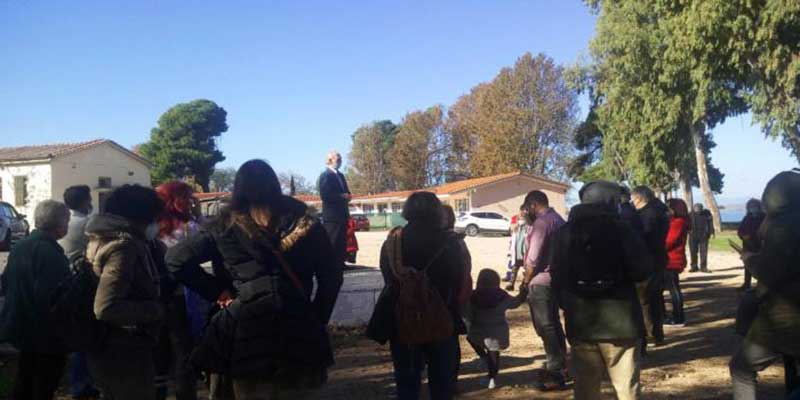 Η ξενάγηση έγινε από το σύντροφο Σπύρο Χαλβατζή που υπήρξε κρατούμενος και εκεί. Σύντροφοι και φίλοι του Κόμματος ξεναγήθηκαν στις εγκαταστάσεις του συγκροτήματος, στο προαύλιο των φυλακών, στο θάλαμο των κρατουμένων και στα κελιά της απομόνωσης.