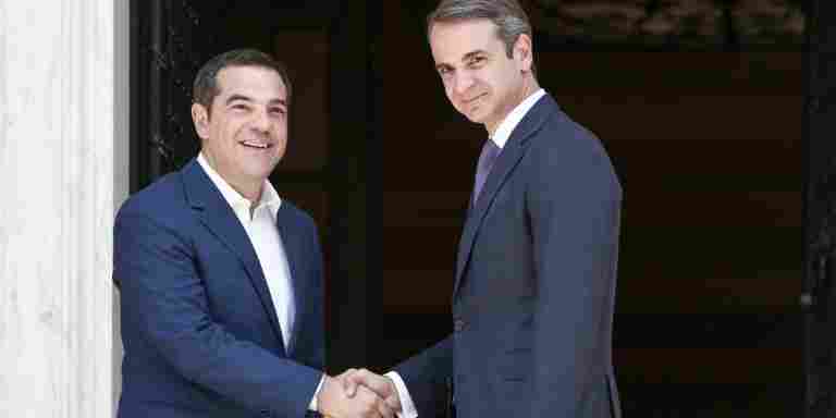 Ο Κυριάκος Μητσοτάκης και ο Αλέξης Τσίπρας στο Μέγαρο Μαξίμου.