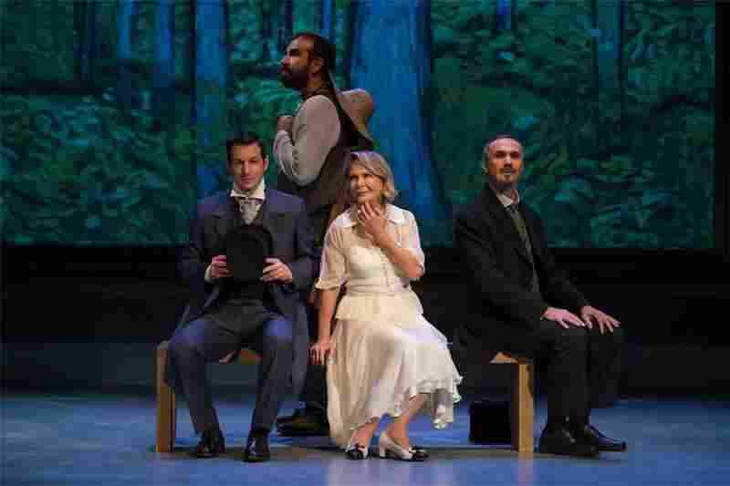 Στην παράσταση ‘’Το βαλς των δέντρων και του ουρανού’’ είναι όλοι οι ηθοποιοί … χρώματα, παλέτες και πινέλα, που συνθέτουν τη ζωή του Βίνσεντ βαν Γκογκ, επί σκηνής, με επίκεντρο τους πίνακές του,σε μια δραματοποιημένη λογοτεχνική δημιουργία!… Και όλα συνυπάρχουν και εξελίσσονται σε μια ερωτική ‘’εμπλοκή’’ των τεχνών… Σε μια ανταλλαγή πολλαπλών τεχνοσκυταλοδρομιών: ζωγραφικής, λογοτεχνίας, θεάτρου, μουσικής και τόσων άλλων τεχνών… Ποιητής, εν τέλει, ο Β.Γκογκ και ζωγράφος ο συγγραφέας του βιβλίου ‘’Το βαλς των δέντρων και του ουρανού’’, Jean Michel Guenassia;… Ένας κινούμενος πίνακας, κάθε πράξη του έργου,μικρά οπτικά ‘’ζωγραφικά’’ ενσταντανέ, η ζωή του ζωγράφου,με fondoμια σειρά πινάκων του -και, μάλιστα, με ειδικά υπέροχα εφφέ,απολαμβάνει το κοινό κινούμενες τις πινελιές του ζωγράφου…Το σκηνικό, σαν μεγάλος πίνακας εποχής, εσωκλείει, αγκαλιάζει, προστατεύει τους … τεράστιους του Β.Γκογκ.Τα πινέλα του ζωγραφίζουν, γεννούν … φθογγόσημα στα τόσο ρεαλιστικά, όμως …ονείρων τοπία! Σαν να ζωγραφίζει μουσική,μια καιη μουσική για τον ίδιο… ζωγραφίζει, αφού εμπνέεται απ’ αυτήν…Πώς αλλιώς θα μπορούσε να είναι για έναν άνθρωπο σαν τον Β.Γκογκ, όταν υποστήριζε για τον Βάγκνερ ότι ‘’η μουσική του είναι κιβωτός, γιατί είναι εμποτισμένη από ιερότητα πνεύματος’’;